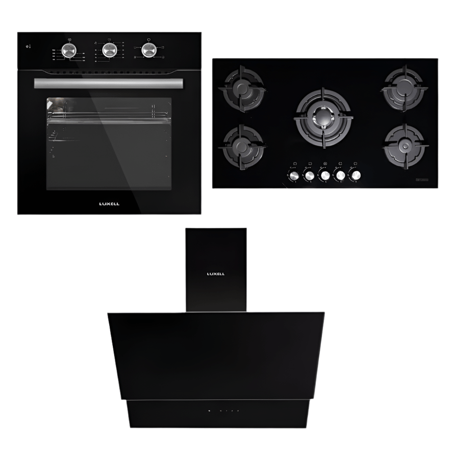 Transform your cooking experience with the Luxell 90CM Black Glass Built-In Set, featuring a 5-burner gas hob, powerful extractor hood, and a high-performance oven. Designed for modern kitchens, this sleek and efficient set offers powerful performance, user-friendly features, and easy maintenance—perfect for both home chefs and professionals.